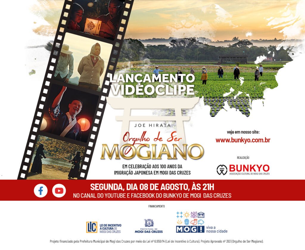 Marquem na agenda! O lançamento do videoclipe ‘Orgulho de ser Mogiano’, em celebração aos 100 anos da Imigração Japonesa em Mogi das Cruzes, será amanhã, dia 8 de agosto, às 21h, aqui em nossa página e também em nosso canal no Youtube (https://www.youtube.com/c/BunkyoMogidasCruzes). Orgulho de ser Mogiano é produzido e interpretado por Joe Hirata, com uma […]