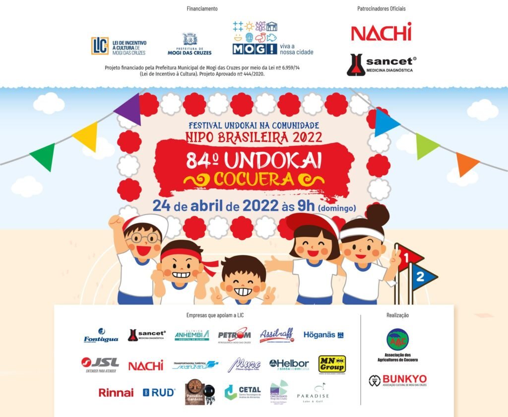 Neste domingo (24 de abril, a partir das 9h), teremos o 84º Undokai de Cocuera, que faz parte do Festival Undokai na Comunidade Nipo Brasileira 2022. O undokai é um evento tradicional da cultura japonesa, composta por diversas gincanas muito divertidas, para todas as idades, venha conhecer! Faça o download da programação aqui: https://drive.google.com/…/1_7q9dUSsbWFPtYW12hj…/view… Associação dos […]