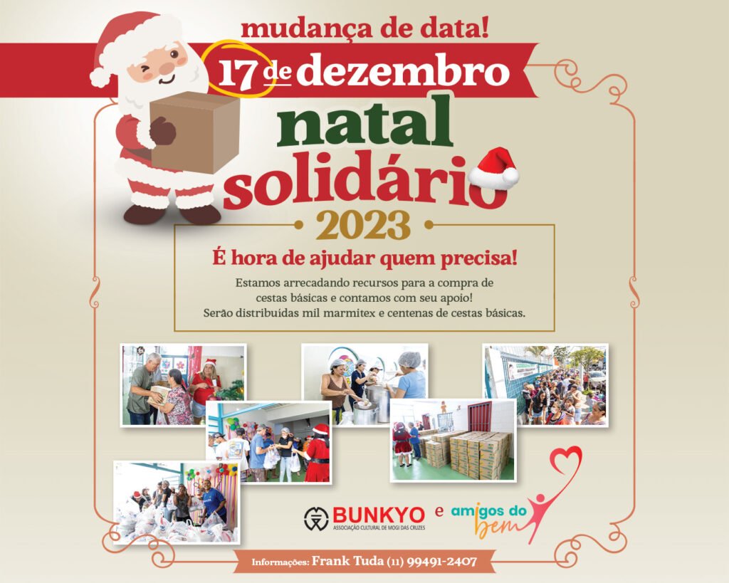 Atenção para a nova data do Natal Solidário: 17 de dezembro, domingo! Vamos ajudar quem precisa! O Bunkyo de Mogi das Cruzes e os Amigos do Bem estão arrecadando recursos para a compra de centenas de cestas básicas e insumos para o preparo de mais de mil marmitex. Centenas de famílias são beneficiadas perto do […]